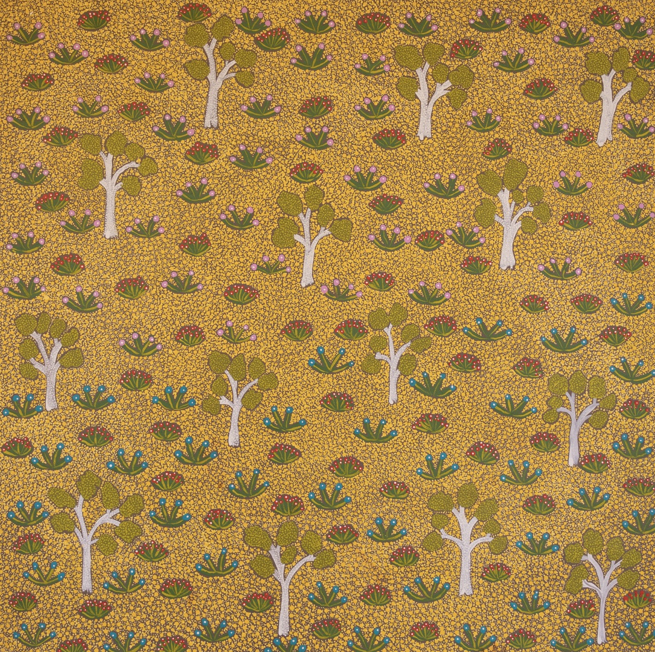 The artists of Ampilatwatja made a conscious decision not to paint altyerr (dreaming stories). The artists paint their country where those stories sit.